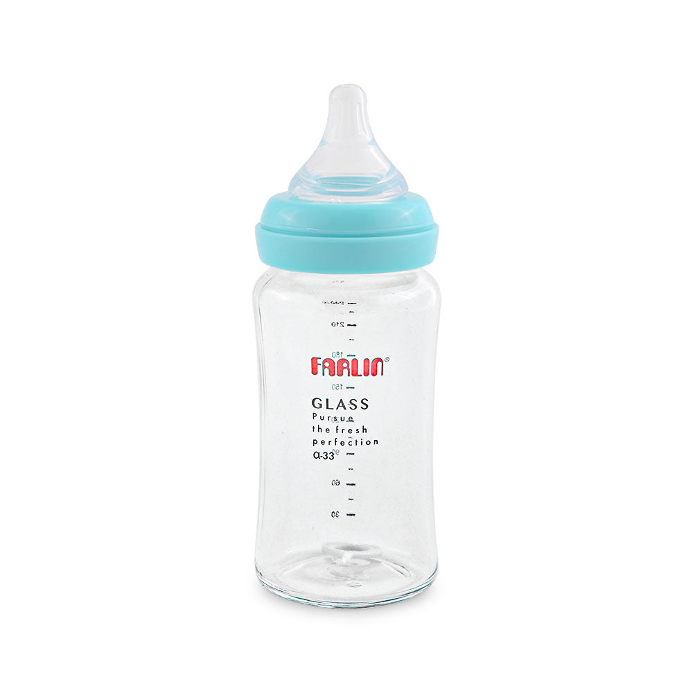 WIDE NECK GLASS FEEDER 240ML - BLUE